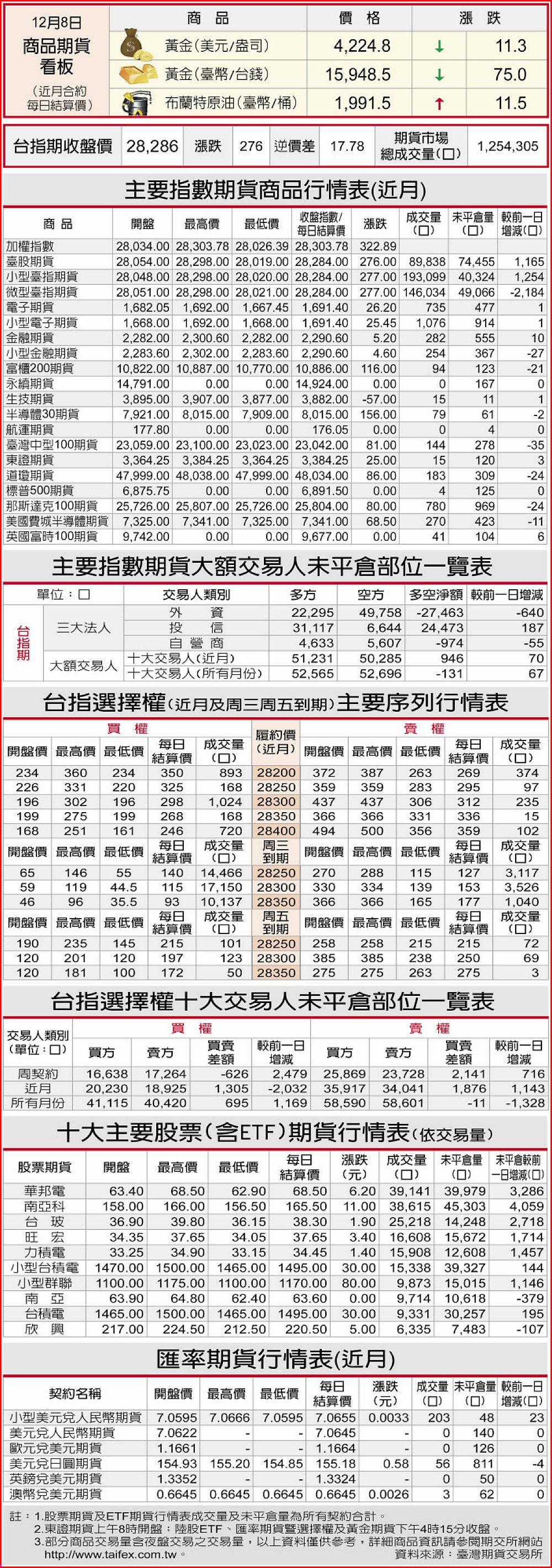 期貨商品行情表 台指連續兩個交易日收最高,來到波段反彈高點,且站穩在所有均線之上,整體多方架構明確。展望本周,投資人應關注美國10月JOLTs職位空缺數,以及FOMC利率決策會議,市場普遍預期在近期美國就業數據疲軟後,央行將降息1碼。